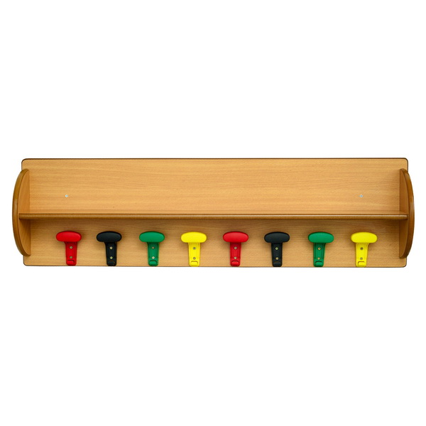 Porte manteau en bois à 5 patères plastiques - long 75 cm