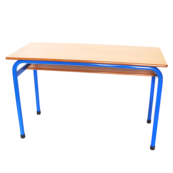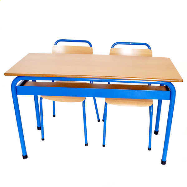 Table biplace Piétement cintré – Dim 1.20m x 0.50 m avec casier ouvert et arrêtoir en Tôle.